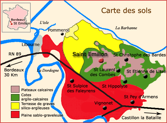 Todos esses municípios compartilham as qualidades do solo específicas da denominação de Saint-Emilion e reúne vários elementos essenciais para a produção de vinhos de alta qualidade, aonde podemos destacar alguns componentes que formam o seu Terroir: