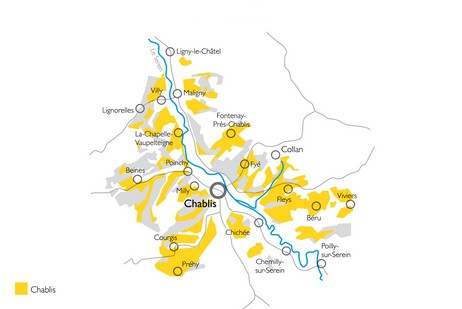 - Vinhedos nas encostas exposta ao sul/leste na margem esquerda e direita do rio Serein, compostos de solos Kimmergidianos, num total de 780 hectares, dos quais 778 hectares dos vinhedos em produção.