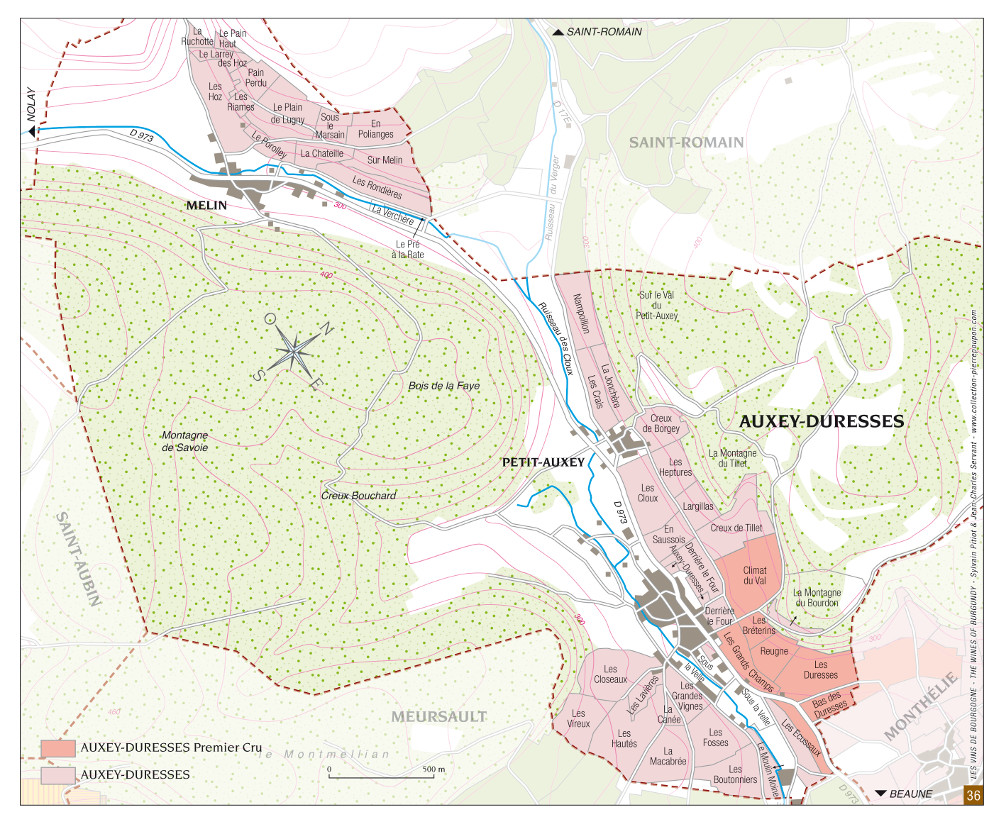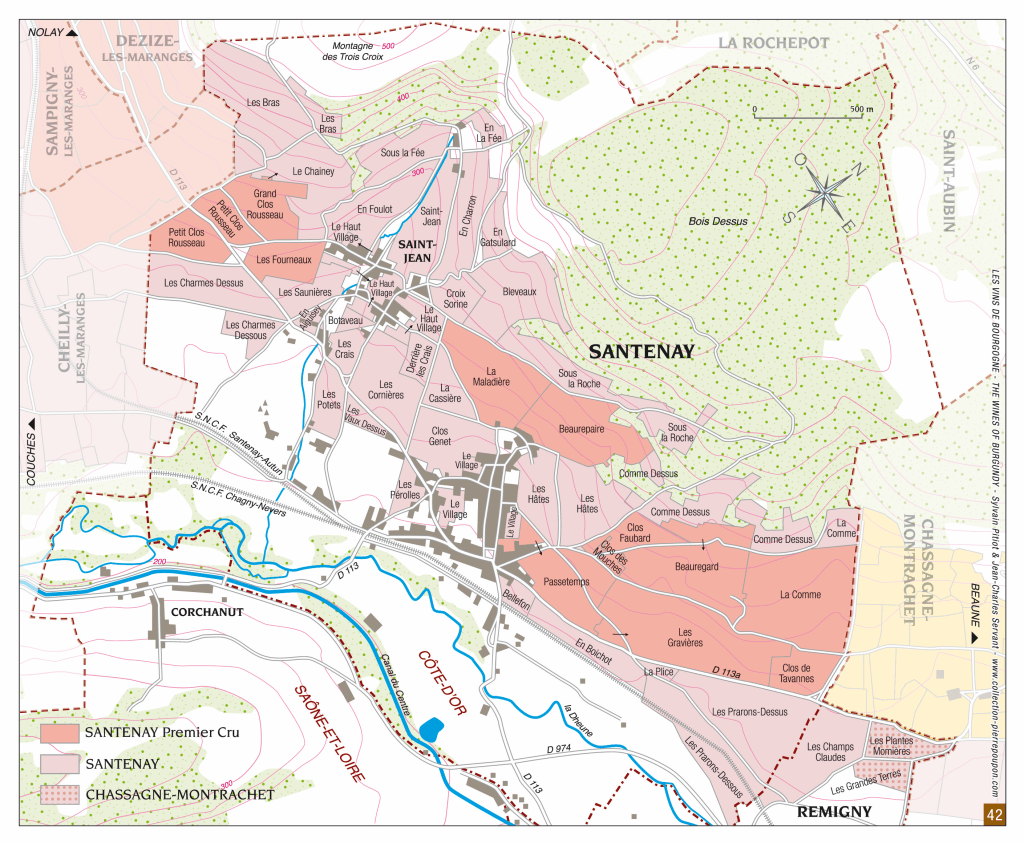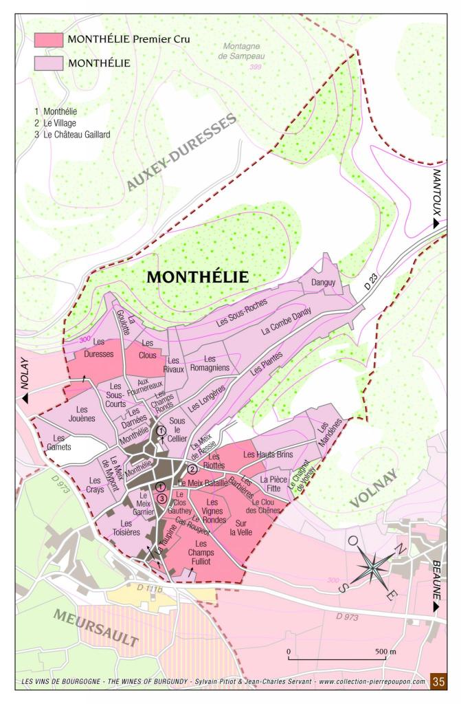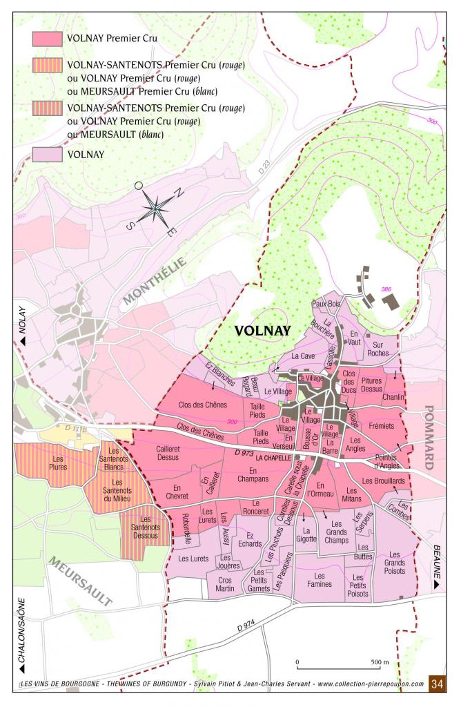 Obs- as parcelas de vinhedos de uva Pinot Noir nos Climats Les Plures, Les Santenots Blancs, Les Santenots du Milieu e Les Santenots Dessous (AOC Meursault) vão para a AOC Volnay Premier Cru.