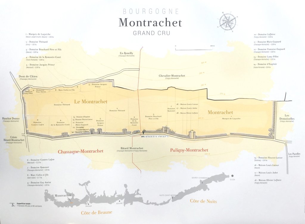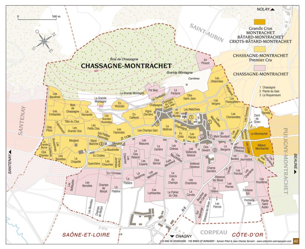 Em Chassagne-Montrachet vamos ter 03 AOC Grand Cru, sendo as AOC Criots-Bâtard-Montracher exclusiva e as AOCs Montrachet e Bâtard-Montrachet compartilhada com Puligny-Montrachet.
