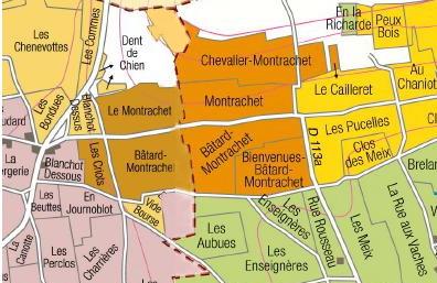 - Champ Canet, Champ Gain, Clavaillon, Clos de la Garenne, Clos de la Mouchère, Hameau de Blagny, La Garenne, La Truffière, Le Cailleret, Les Chalumaux, Les Combettes, Les Demoiselles, Les Folatières, Les Perrières, Les Pucelles, Les Referts e Sous le Puits