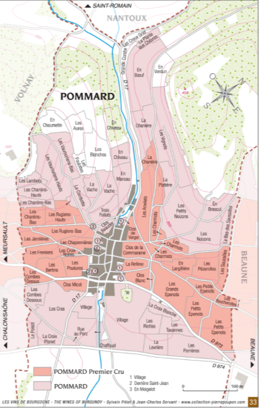 Obs- Quando é só mencionada a AOC Village Premier Cru (neste caso Pommard Premier Cru), sem o Climat especifico significa que as uvas para a produção deste vinho vieram de mais de um Climat na mesma AOC.