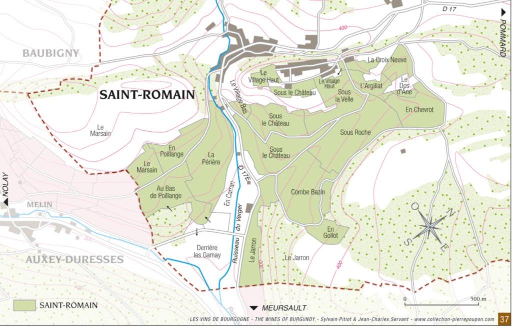 - Na AOC Village Saint-Romain não há Climat Premier Cru, mas sim 16 Lieux-Dits