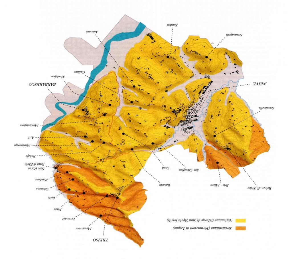 – Vinhedos mais perto do rio Tanaro, com exposições Oeste/Sudoeste e mais baixos- Vinhos frutados, macios, sutis, menos estrutura. Janela de consumo de 5 a 10 anos.