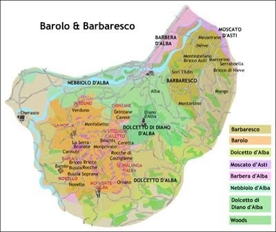 Localiza-se somente a 3 quilômetros a sudoeste da zona de Barbaresco , com apenas os vinhedos de Diano d’Alba plantados com Dolcetto entre as duas grandes regiões de Nebbiolo. Em comparação com a zona de Barbaresco, a zona de Barolo é mais fria e localizada em altitudes mais elevadas, tendo a colheita 1 semana após a de Barbaresco.