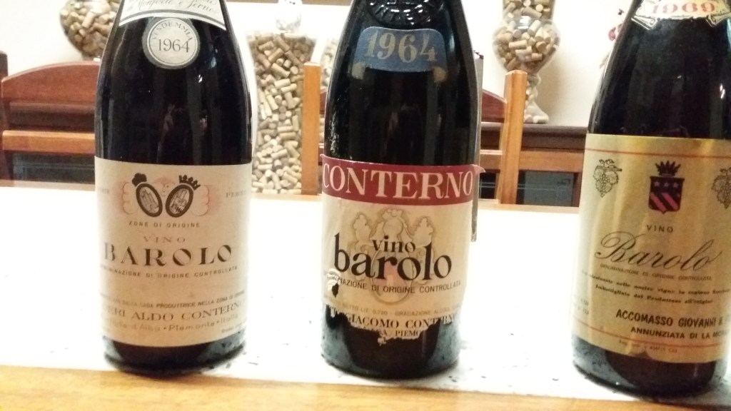 Nomes como Giacomo Conterno, Aldo Conterno e Giovanni Accomasso já faziam grandes vinhos, como estes da excelente safra de 1964 e da não tão boa safra de 1969, ano em que Aldo Conterno resolve se separar de seu irmão Giovanni e criar a Poderi Aldo Conterno.