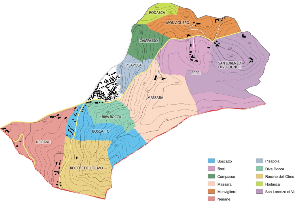 2- Verduno- 11 MGA- Boscatto, Breri, Campasso, Massara, Monvigliero, Neirane, Pisapola, Riva Rocca, Rocche dell’Omo, Rodasca e San Lorenzo di Verduno.