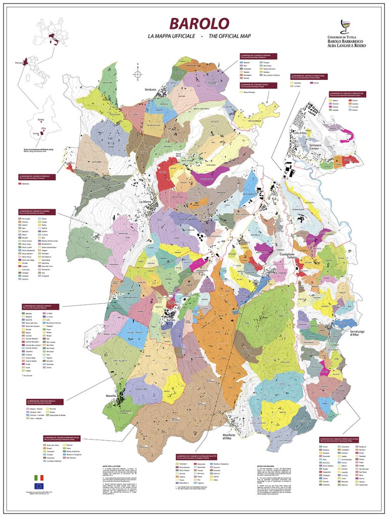 Em 2010, após anos de trabalho, as “Menzione Geografiche Aggiuntive” de Barolo DOCG foram finalmente definidas por lei do Parlamento Italiano, o segundo vinho na Itália a ostentar esta honra, depois de Barbaresco. São 181 denominações sendo 170 de vinhedos e 11 comunais.