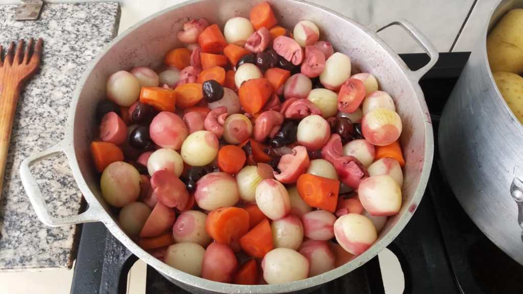 Como o tempo de cocção da perna é diferente do pernil eu separo o Stinco e uso para faze-lo em outra preparação, cozido por longo tempo.