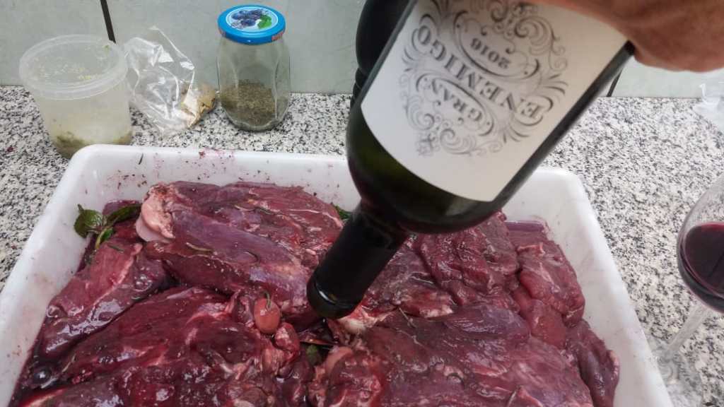 Como costumo servir na degustação de vinhos e para facilitar o corte, eu desosso antecipadamente e fatio na hora de servir.
