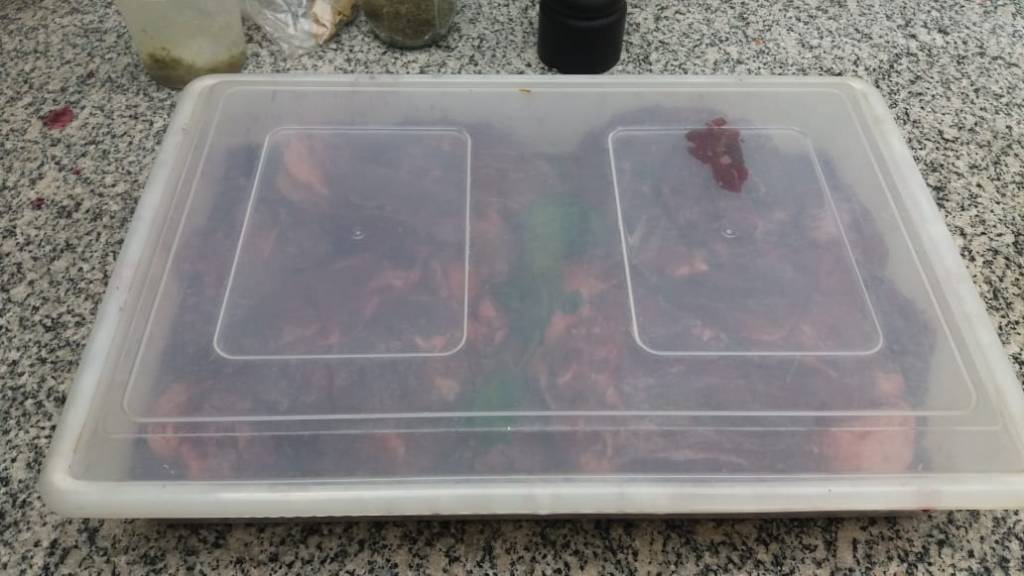 Temperar o pernil (sal, pimenta, alho, ervas finas/tomilho, louro, alecrim, hortelã)