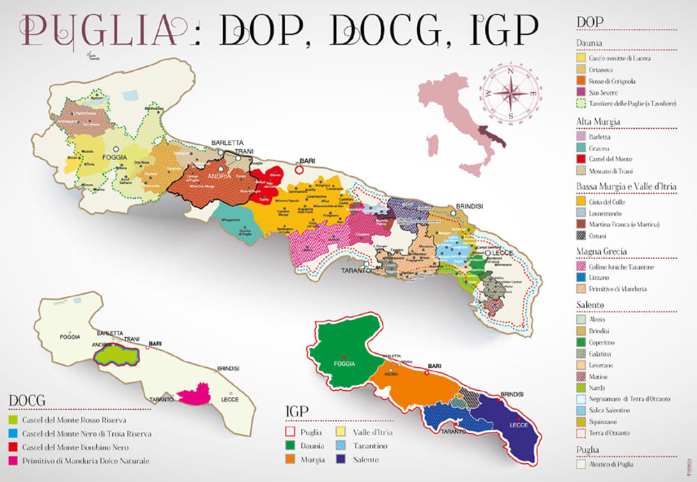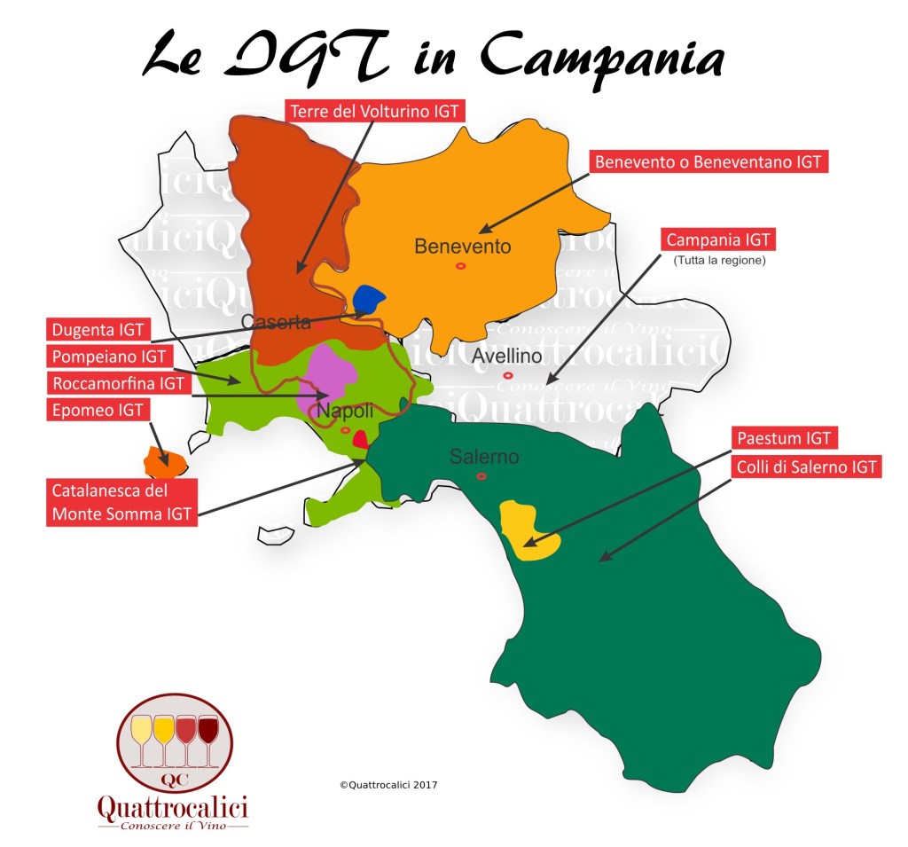 Possui 04 DOCG (Aglianico del Taburno passou a DOCG em 2014) e 15 DOC