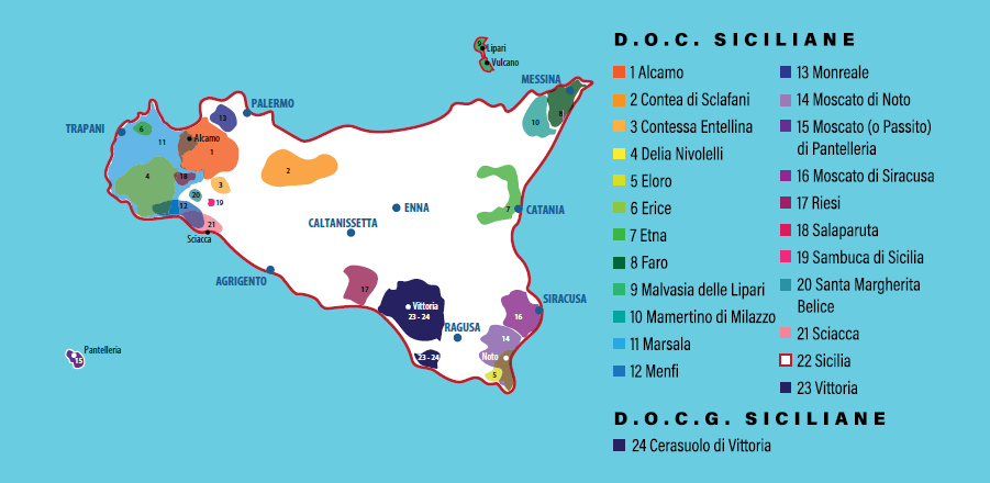 Possui 01 DOCG e 17 DOC (Malvasia, Monica e Moscato di Cagliari juntaram na DOC Cagliari)