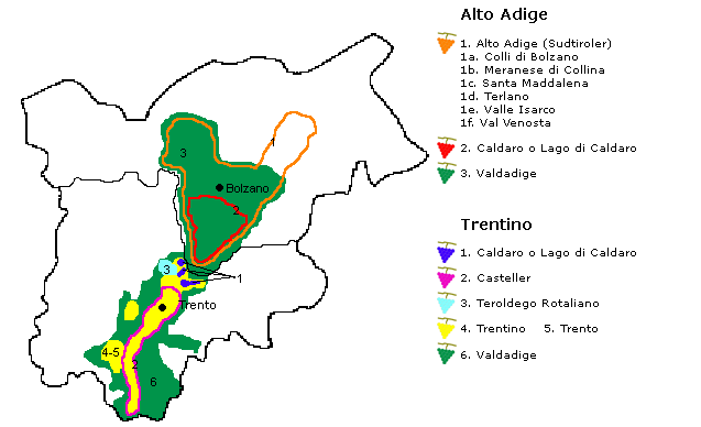 Possui 11 DOCG e 41 DOC e divide-se em 02 sub-regiões: