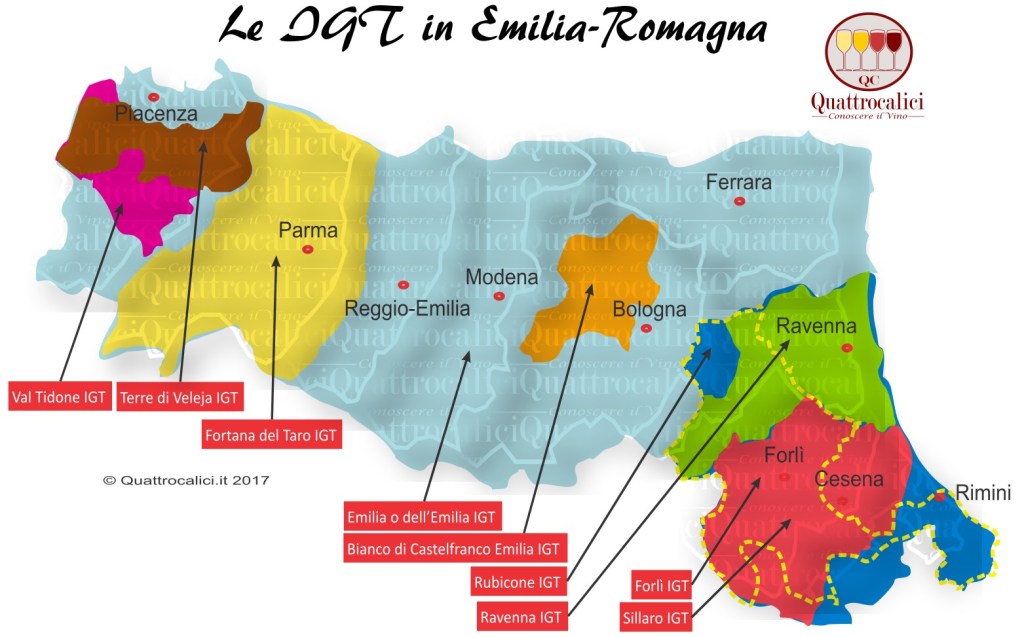 Possui 02 DOCG (acrescentou a DOCG Colli Bolognesi Pignoletto em 2014) e 19 DOC