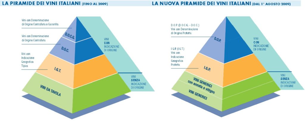 Em 1963 é implantada o sistema de classificação de vinhos italianos, logo após o “Tratado de Roma” e estabeleceu a hierarquia dos vinhos nos moldes da AOC francesa.
