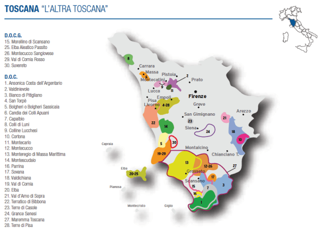 L’Altra Toscana possui 05 DOCG e 27 DOC