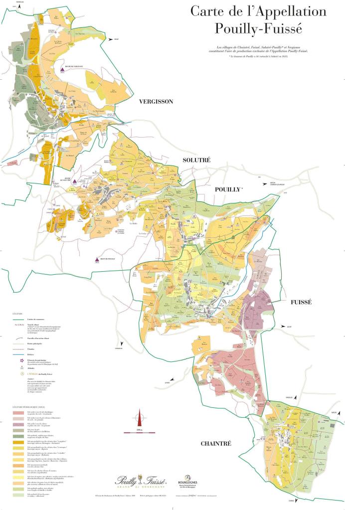 - Fuissé: Les Clos, Les Brulés, Les Ménétrières, Les Perrières, Les Reisses, Les Vignes Blanches e Vers Cras (compartilhado com Solutre-Pouilly)