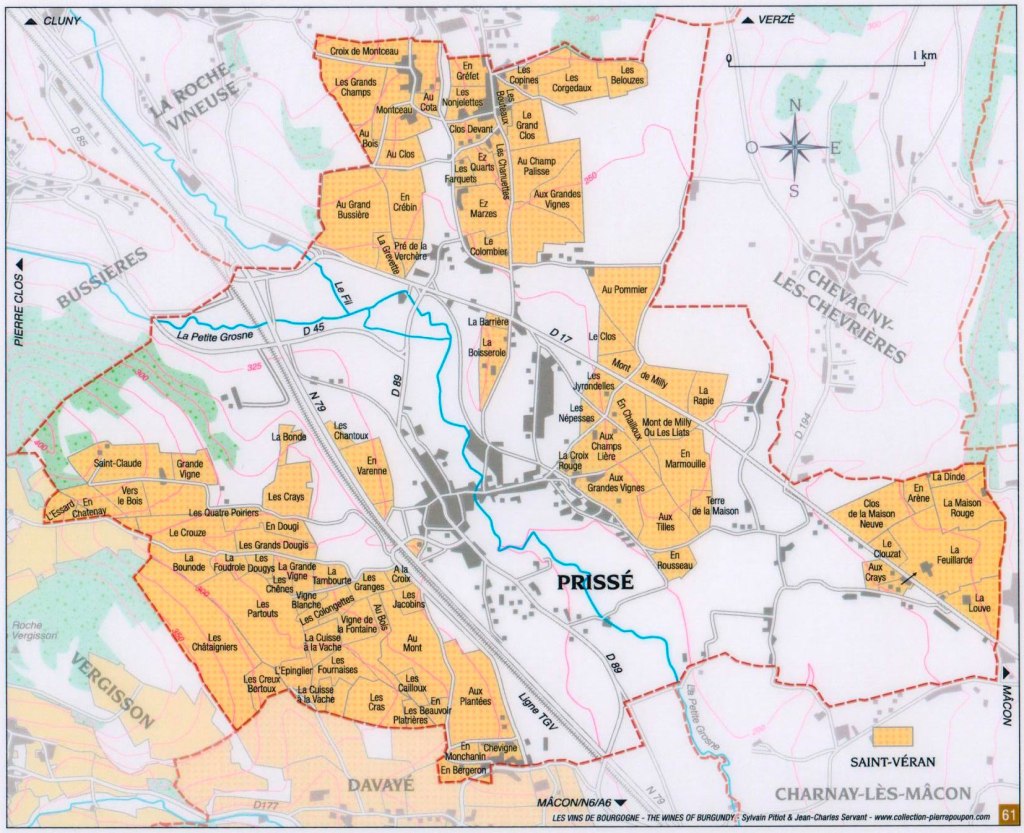 - Solutre-Pouilly: Au Vignerais, Aux Bouthières, Aux Chailloux, En Servy, La Frérie, Le Clos de Solutré, Pouilly e Vers Cras