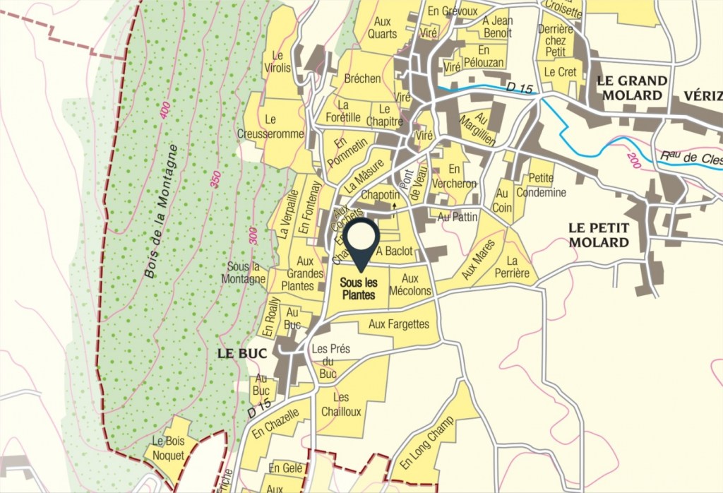 - Climats: Au bois de Fée, En Combe, La Roche, En Messie, Mont Saint-Pierre, En Faux, Les Spires, A la Côte, Les Carrales, La Platière, Charlure, Les Rochettes, Les Cornillaux.
