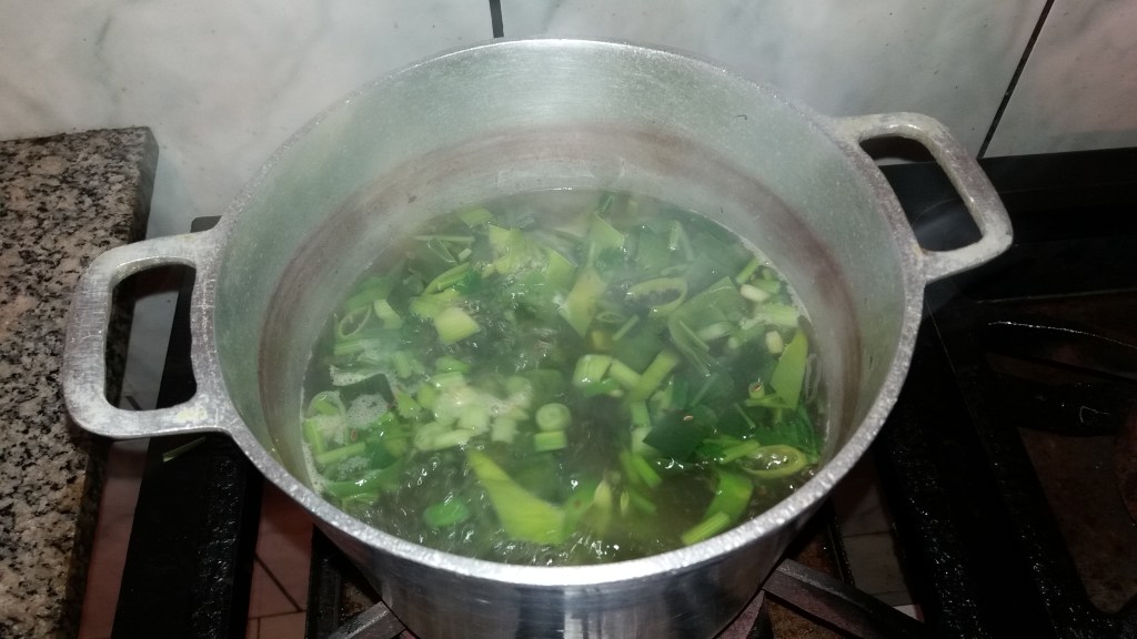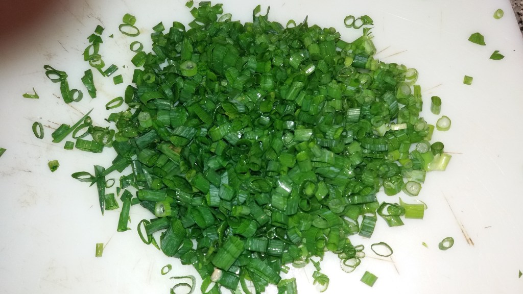 – Cheiro verde– Pique bem a Cebolinha e Salsa- Reserve. Obs- os talos mais grossos podem ser usados no caldo.