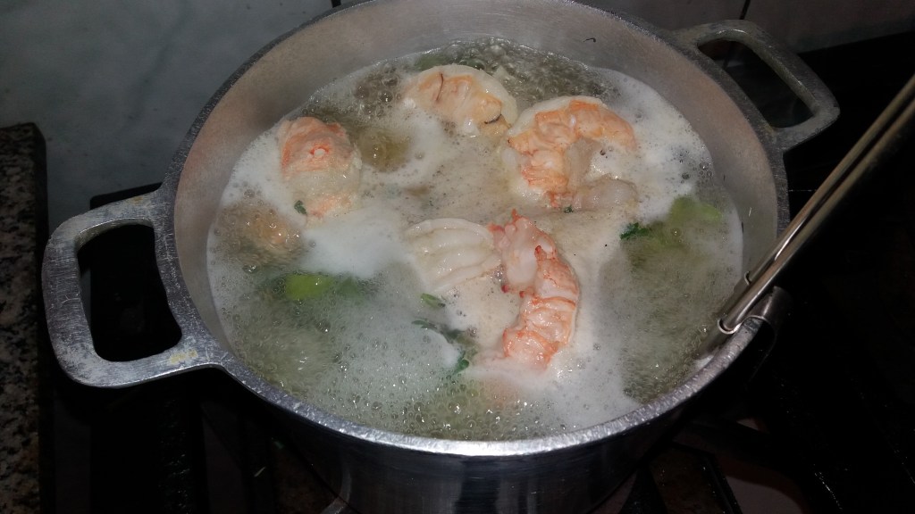 – 15 copos de caldo de legumes, camarão ou peixe, conforme a preferência/disponibilidade; em último caso usar 2 tablete de caldo de legumes industrializado.