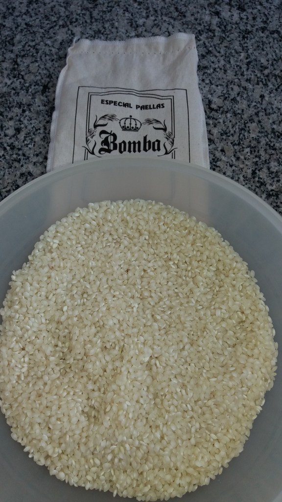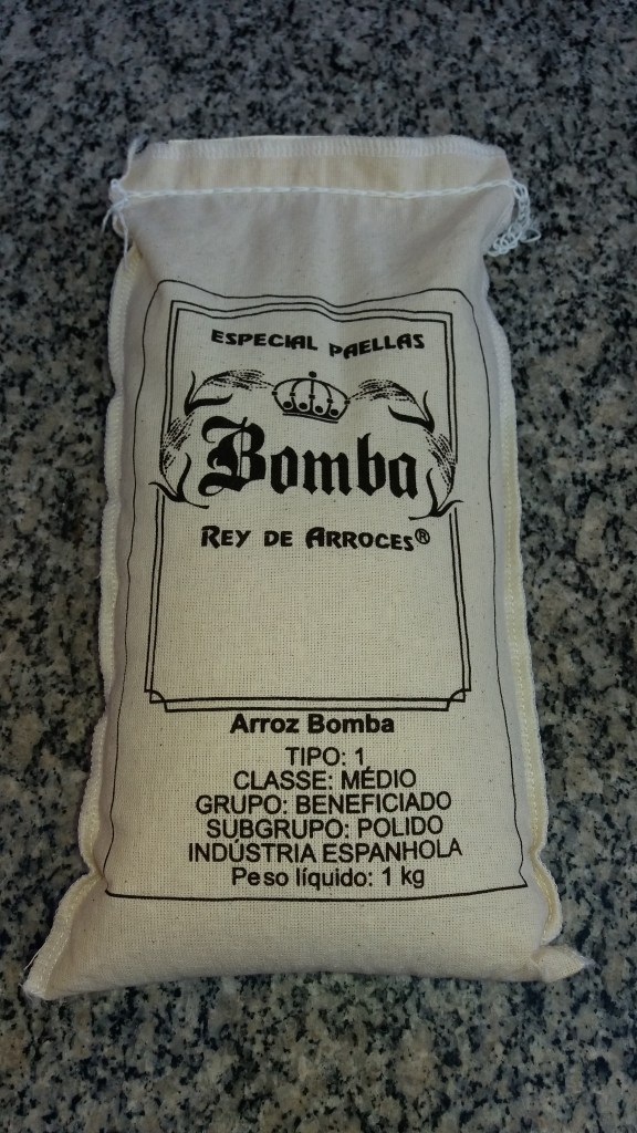 – 5 copos (1 kg) de arroz Bomba (se gosta arroz mais solto) ou Senia (se gosta arroz mais melado); não tendo Bomba pode utilizar Cateto ou Agulhinha; se gosta de mais melado e não vai esquentar posteriormente pode usar Arborio, embora eu não ache adequado; eu nunca uso arroz parboilizado.