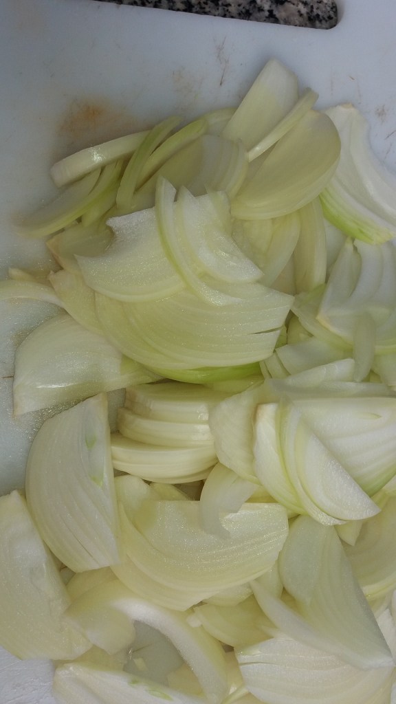 – Cebola (3 cabeças) – descasque e fatie. Reserve