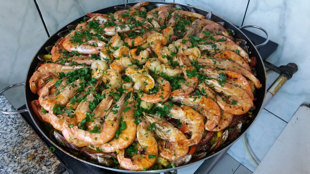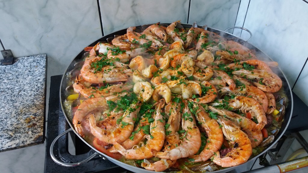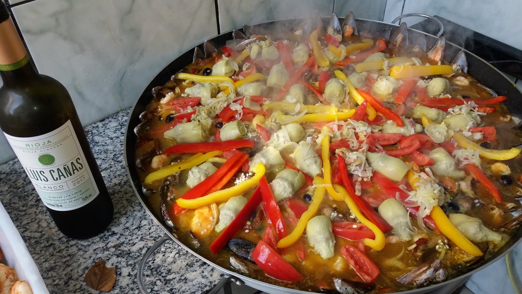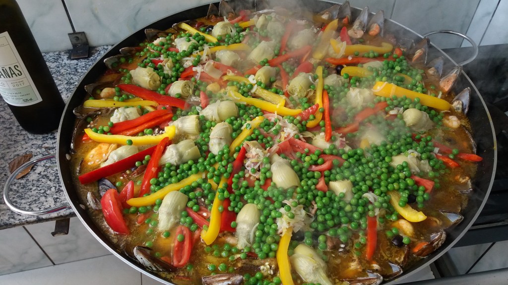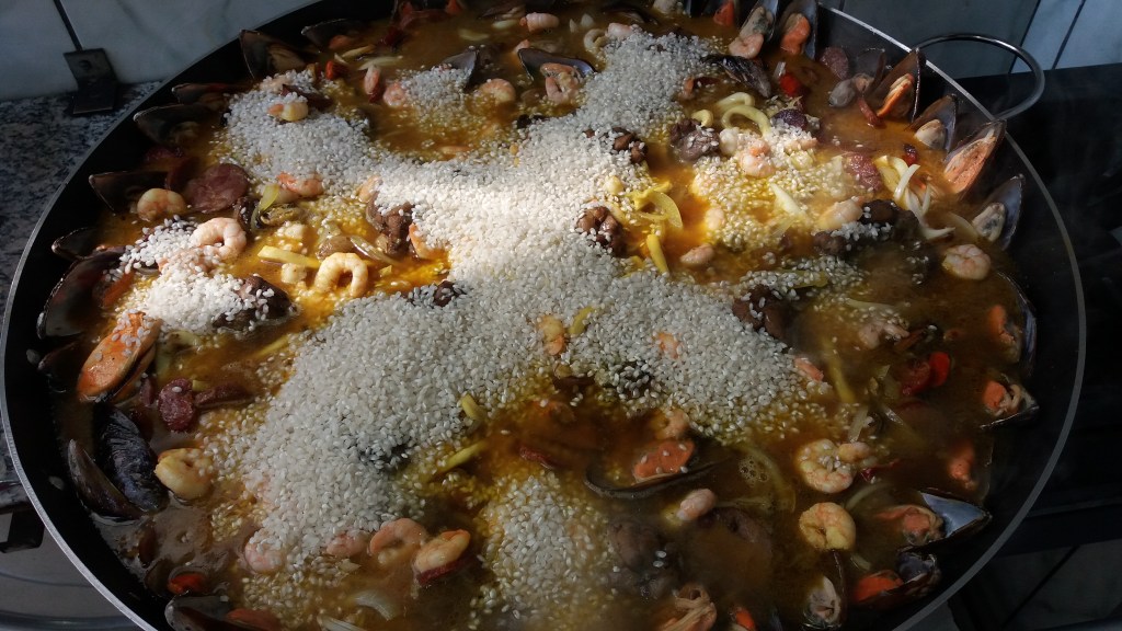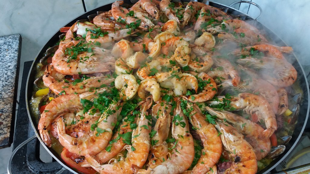 Obs- é claro que dá para fazer uma paella muito mais simples que esta, e usando bons ingredientes também fica deliciosa; mas é assim que faço a minha.
