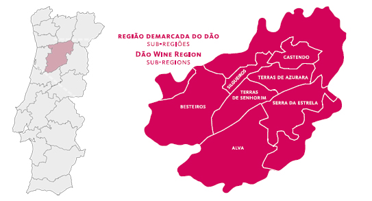 Nesta região as vinhas situam-se entre os 400 e os 700 metros de altitude e em solos onde predominam os pinheiros e as culturas de milho. A região do Dão, rodeada de serras que a protegem dos ventos, produz vinhos com elevada capacidade de envelhecimento em garrafa.