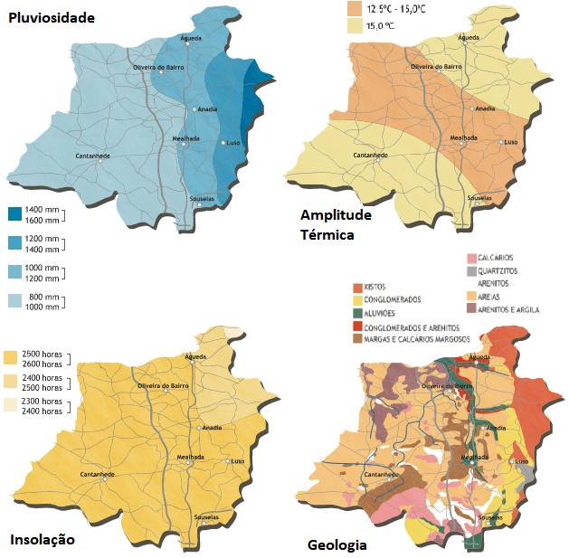 A região da Bairrada é rica na produção de vinhos brancos e tintos, elaborados a partir de castas tradicionais, como a abundante Baga, e outras importadas para solos portugueses, como a internacional Cabernet Sauvignon.